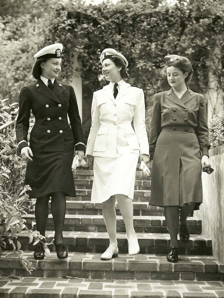 L’uniforme de sortie bleu était porté avec la nouvelle casquette de l’NNC avec l’insigne officier. La couverture noire était portée pendant les mois d'hiver. Une paire de gants gris (remplacés par des gants noirs au début de 1945) sont facultatifs (ou des gants blancs avec les uniformes). En Décembre 1944, les bas beiges ont remplacé les bas noirs qui étaient portés avec l'uniforme de sortie bleu marine.