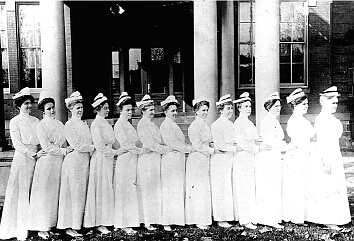Navy Nurses posant devant l’US Naval Hospital, à Philadelphie, Pennsylvanie, 1914.